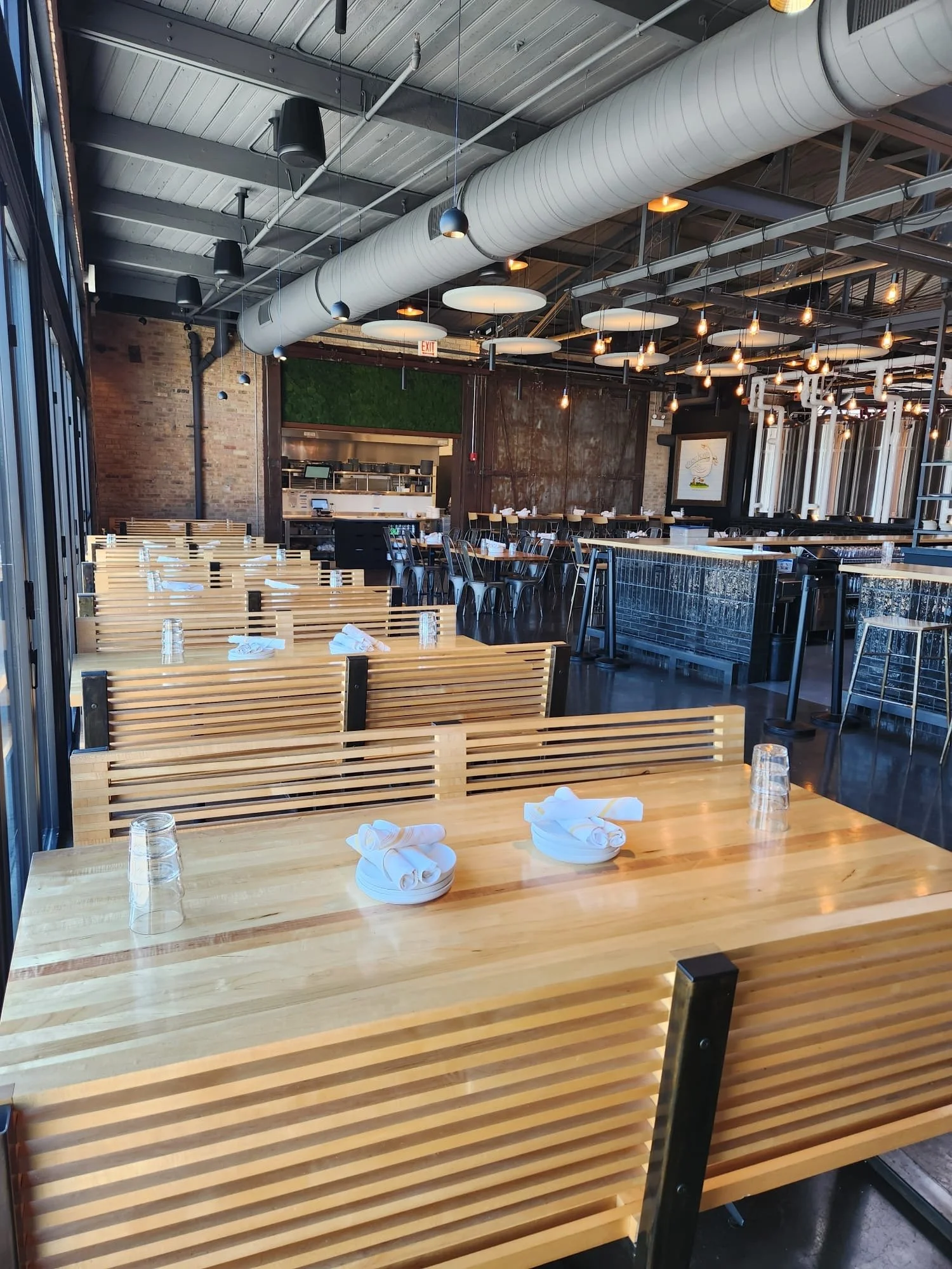 We took the old tables and benches from Goose Island’s famous Clybourn brewpub location, and restored them for use at their new Salt Shed Pub! This involved fabricating new custom steel bases and refinishing all the table tops and benches.